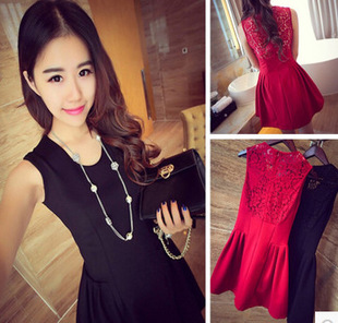 • 2015春季新款韓國(guó)原版甜美后背蕾絲拼接鏤空小性感背心打底連衣裙 /