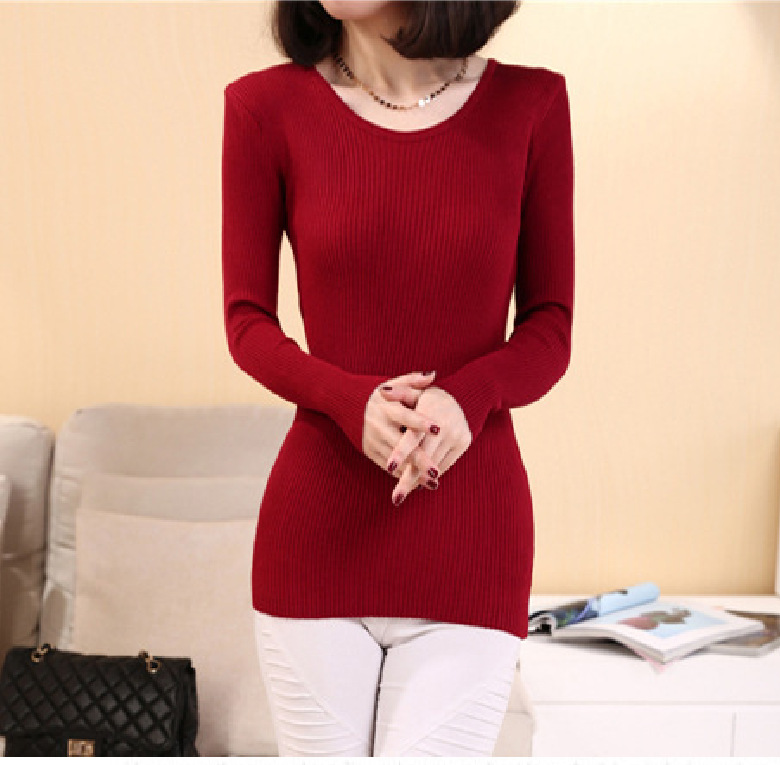 2015秋裝新 韓版大碼女裝 針織打底衫純色 套頭毛衣外套女 批發(fā) /