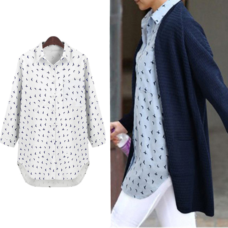 2015歐美大碼女裝 秋裝新款胖mm寬松印花長袖襯衣 女式打底衫 /