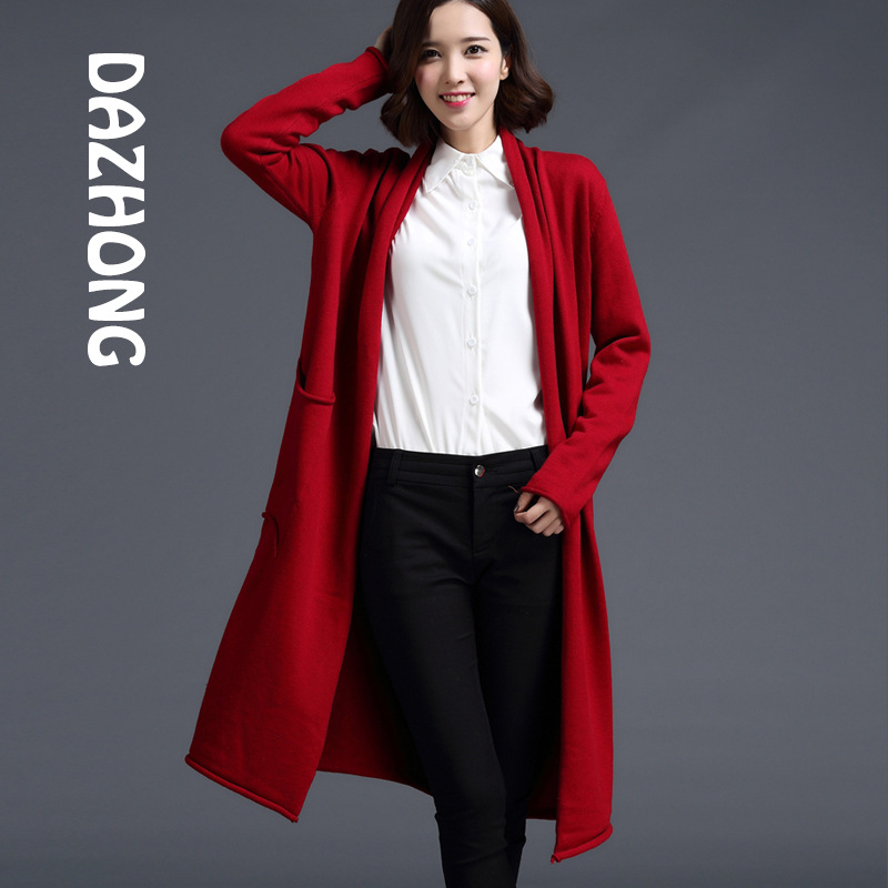 • 2015秋冬裝新款長款針織開衫外套女韓國韓版純色加厚羊毛毛衣外套 /