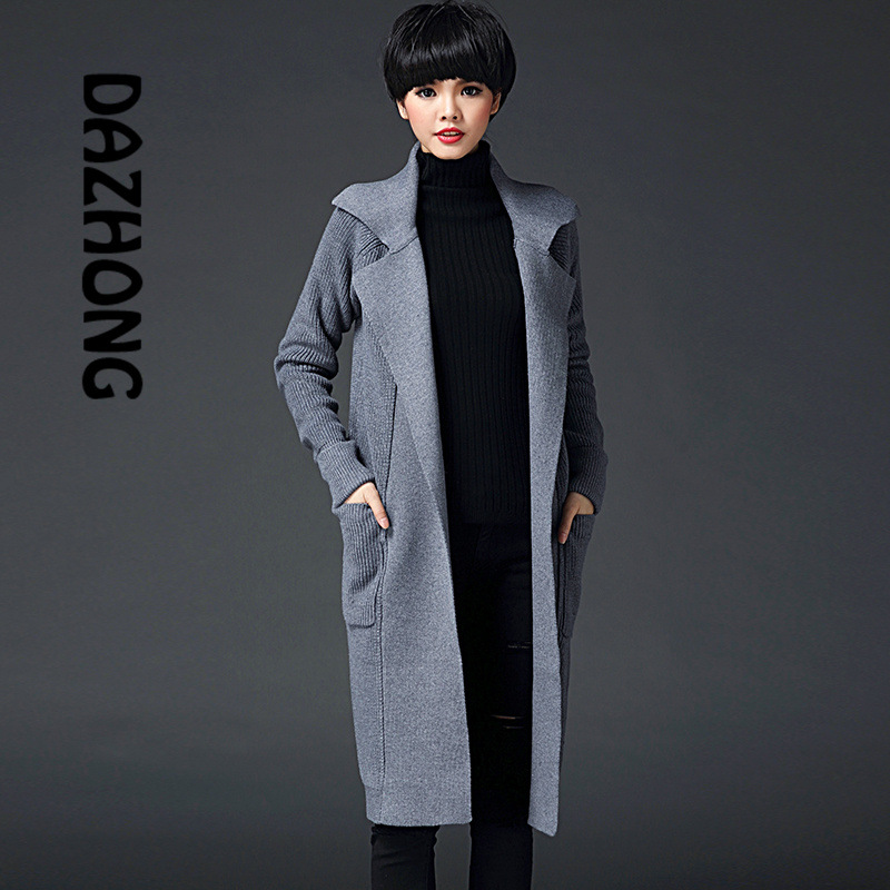 • 2015秋冬新款女羊毛針織開衫大衣風(fēng)衣歐美翻領(lǐng)外套長款毛衣外套女 /