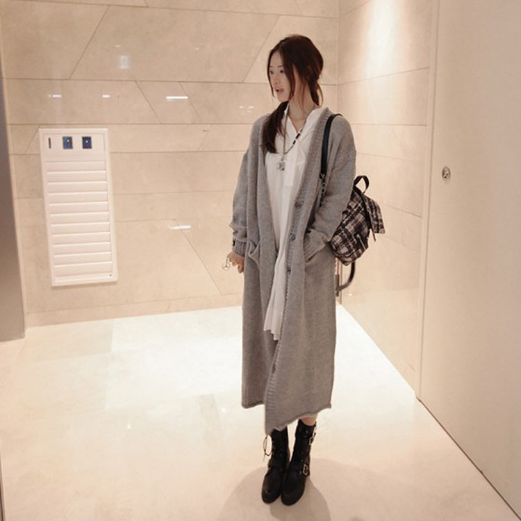 韓國(guó)代購(gòu)2015秋冬韓版超長(zhǎng)款加厚大碼寬松毛衣外套女裝開衫針織 /