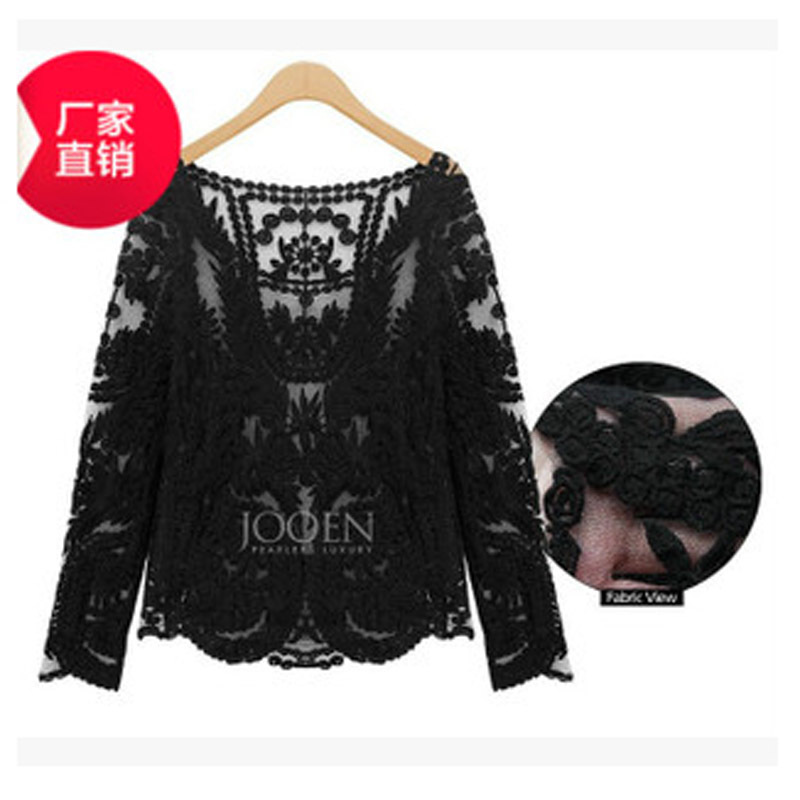 秋季新品 速賣通ebay大碼女裝鏤空長袖蕾絲衫蕾絲打底衫工廠直銷 /