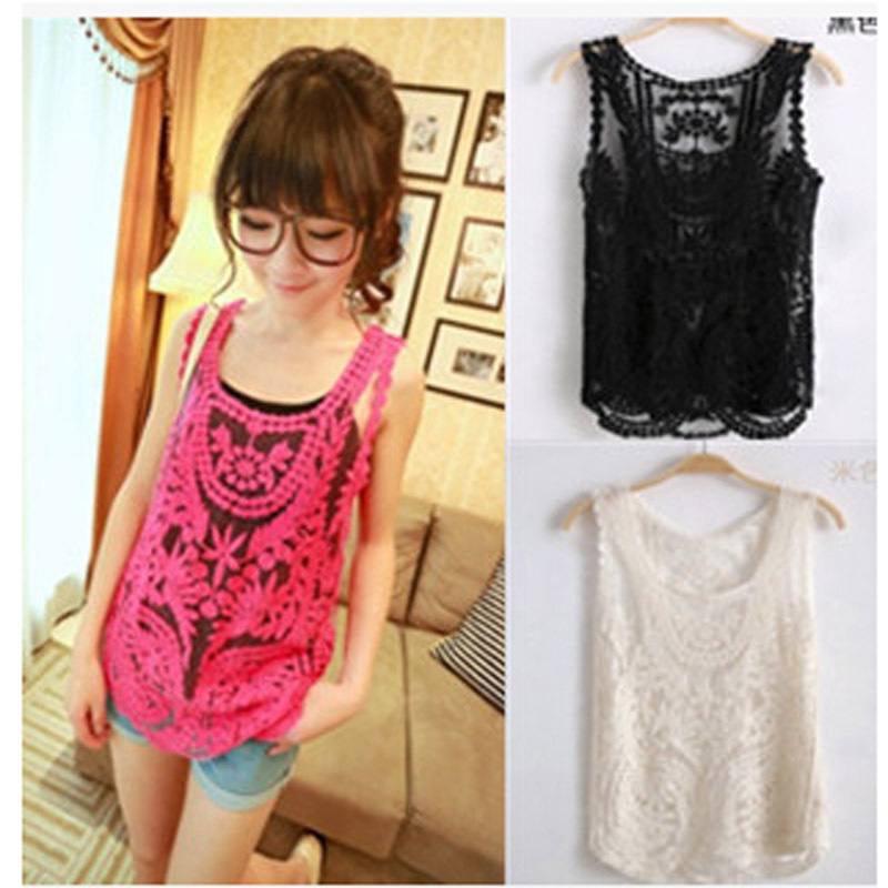 秋季新品 速賣通ebay大碼女裝背心鏤空蕾絲衫打底衫工廠直銷 /