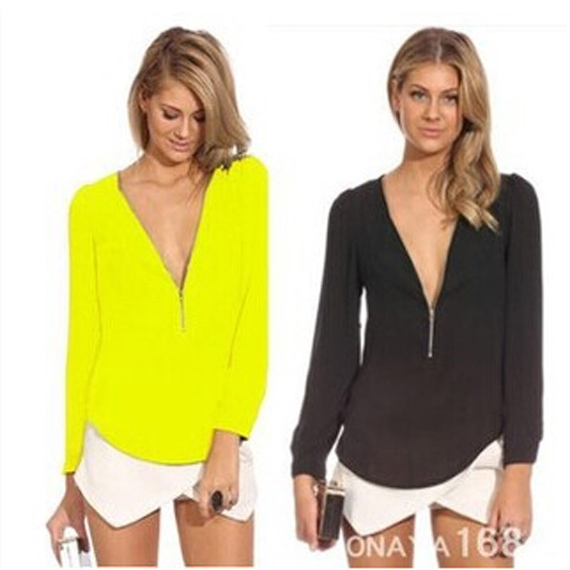 2015秋裝新品速賣通長袖雪紡衫V領拉鏈雪紡衫大碼女裝工廠直銷 /