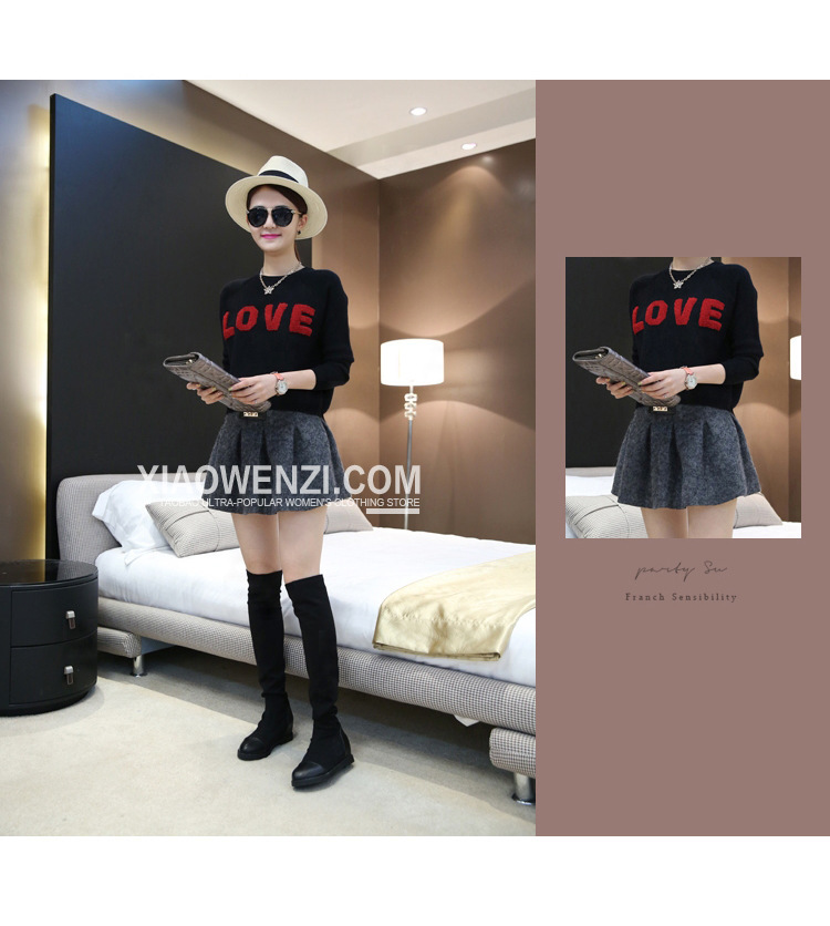 2015新款秋裝上衣韓版love字母愛(ài)心短款套頭毛衣長(zhǎng)袖針織衫女潮 /