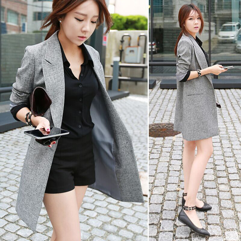 2015秋裝新款女裝韓版中長款修身顯瘦小西服薄西裝女外套 /