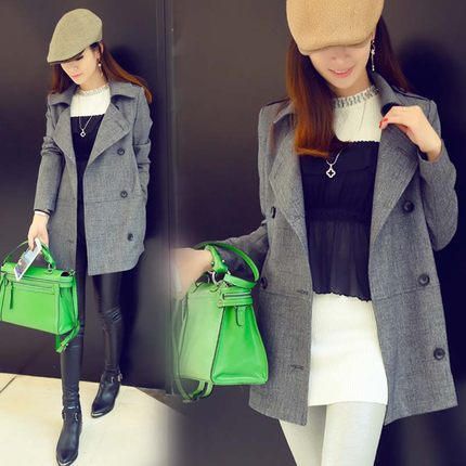 2015秋裝新款修身顯瘦氣質(zhì)小西裝女休閑中長款大碼女裝外套 /
