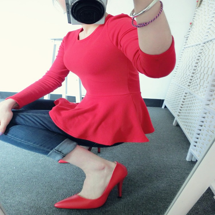 云衣坊 2015新款 韓國東大門 圓領(lǐng)長袖收腰百褶荷葉邊打底衫 T恤 /