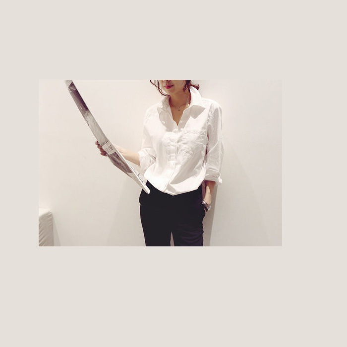 韓國春秋裝新款中長款休閑白襯衫女長袖大碼純棉打底襯衣 /