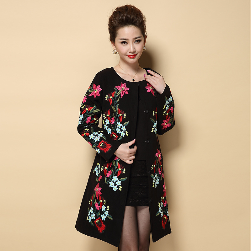 中年女裝媽媽2015秋冬新款民族刺繡花大碼呢子外套 /