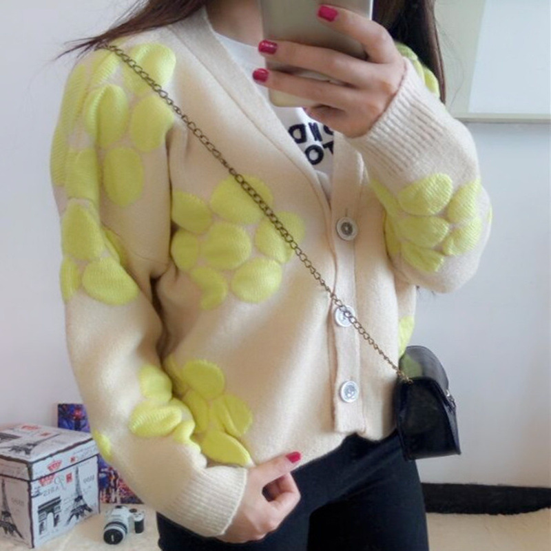 秋冬新款毛衣韓版時(shí)尚花朵蝙蝠衫外套質(zhì)感厚實(shí)寬松毛衣開(kāi)衫女 /