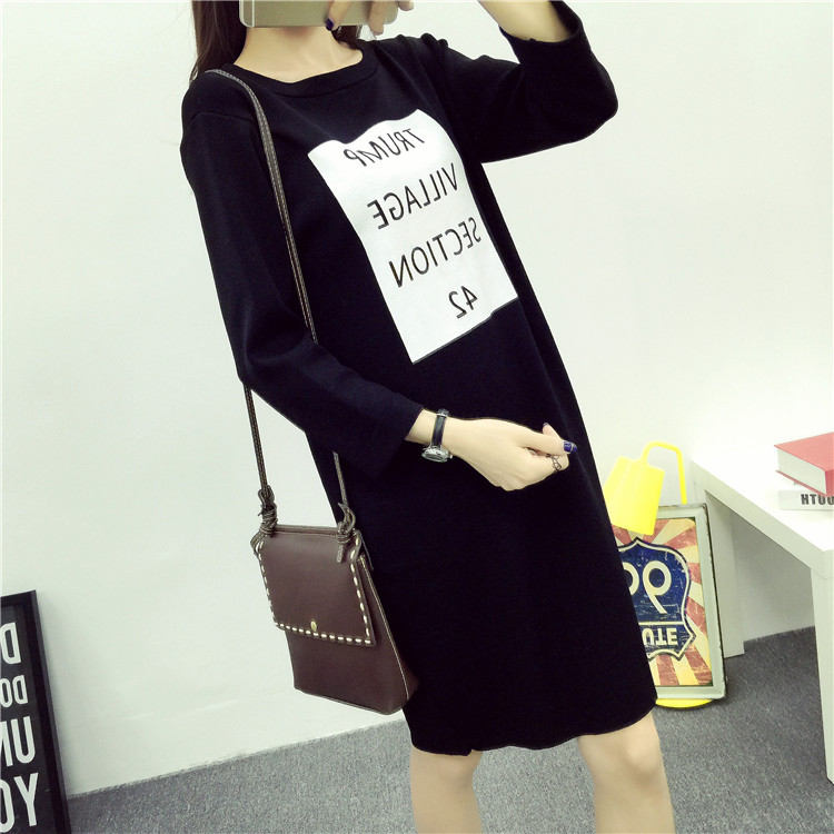 秋冬裝新款韓版寬松大碼中長(zhǎng)款針織衫女中袖字母撞色顯瘦連衣裙 /
