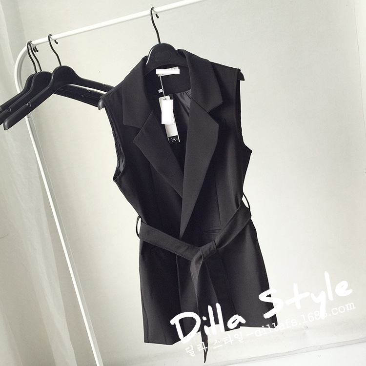 977#實拍韓國東大門2015秋裝系帶翻領(lǐng)背后開叉西裝百搭馬夾馬甲女 /