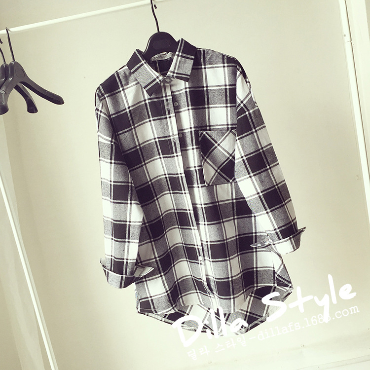 974#實拍韓國東大門2015開衫格子格紋前短后長大碼加厚襯衣襯衫女 /