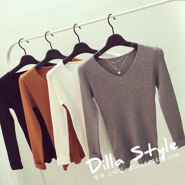 990#活動款!實拍韓國東大門2015秋裝螺紋V領(lǐng)打底長袖針織衫多色 /