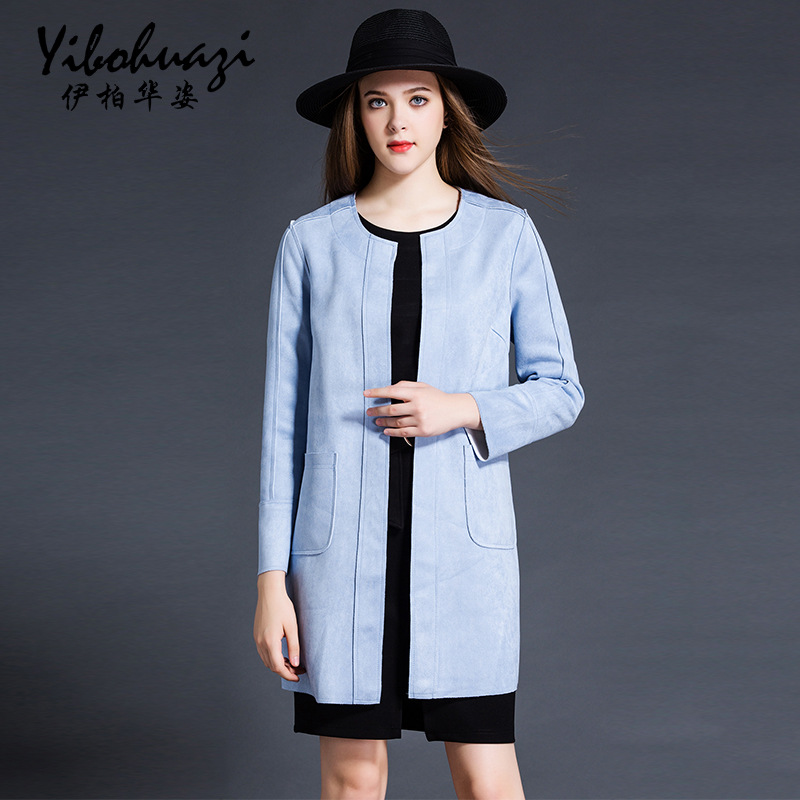 深圳歐洲站秋冬女裝新款歐美高端大牌麂皮絨直筒純色大衣 無紐扣 /