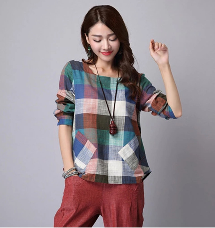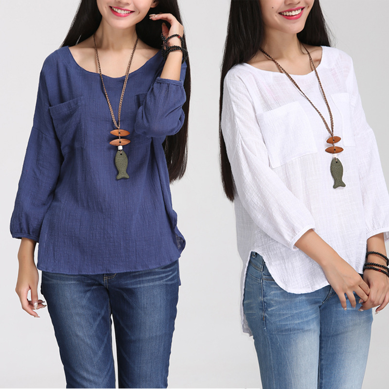 2015秋裝新款棉麻大碼女裝 韓版休閑中長款上衣女長袖t恤 /