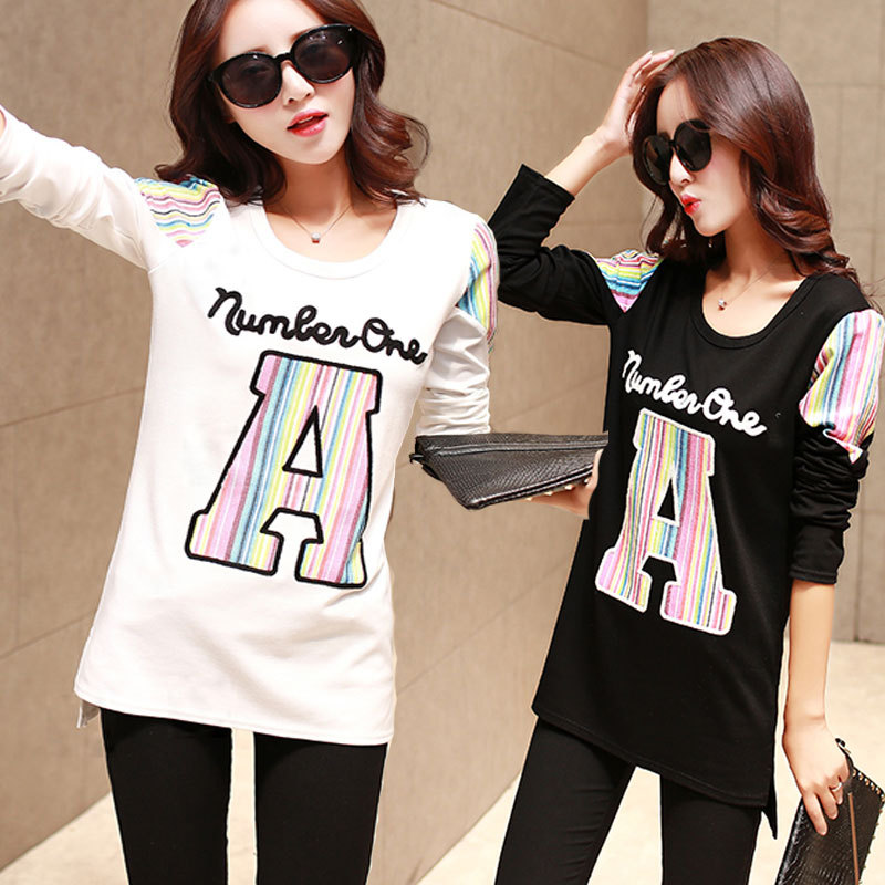 廠家直銷新款女裝長袖寬松大碼純棉上衣T恤字母打底衫潮 /