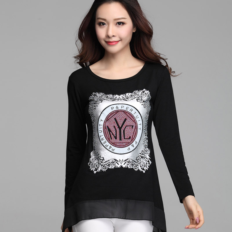 廠家直銷2015秋季熱賣韓版寬松大碼女印花長袖T恤女打底衫 /