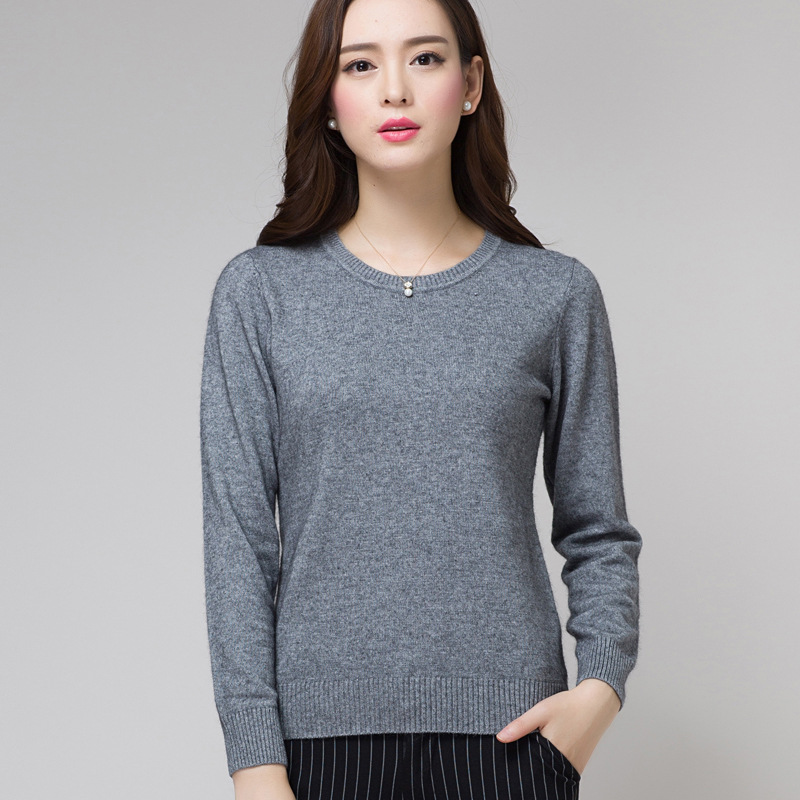 2015秋冬新款女裝羊絨衫 圓領(lǐng)純色套頭針織衫簡(jiǎn)約修身羊絨女毛衣 /