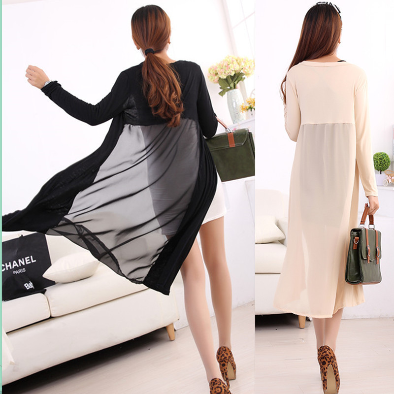2015新款夏季女裝 莫代爾開衫加長款雪紡拼接沙灘服 /