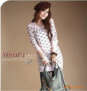 2015新款針織衫簡約秋冬裝女士韓版女裝蝴蝶結(jié)長款毛衣蝴蝶結(jié)毛衣 /