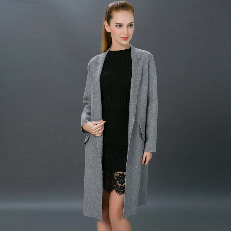 2015秋冬新款 韓版長(zhǎng)款西裝領(lǐng)針織開衫 女式毛衣外套 加厚大衣 /