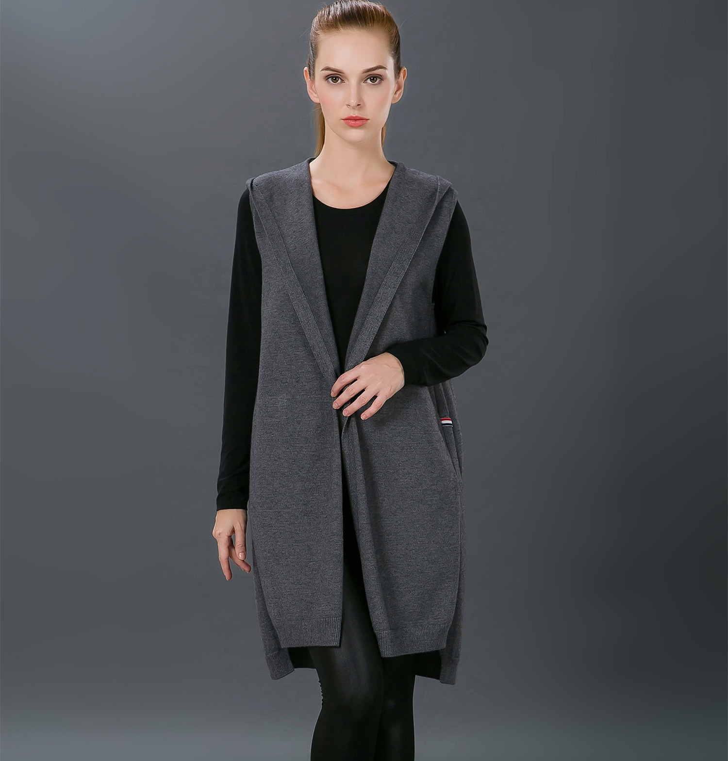 克詩米兒2015秋冬女式韓版中長(zhǎng)款寬松無袖針織衫前短后長(zhǎng)休閑外套 /