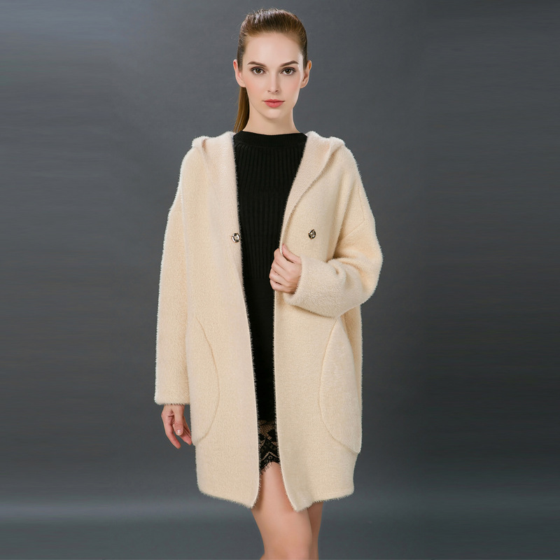 克詩米兒2015秋冬新款歐美風(fēng)針織大衣 長(zhǎng)款加厚連帽針織衫外套女 /