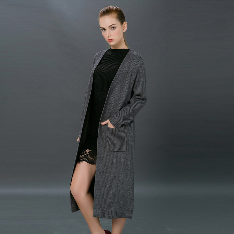 2015新品厚款秋冬韓版大碼長(zhǎng)款寬松針織衫開衫 外搭毛衣女式外套 /