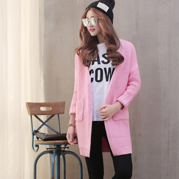 2015秋冬新款女裝 韓版中長款毛衣外套 寬松修身粗線針織開衫 /