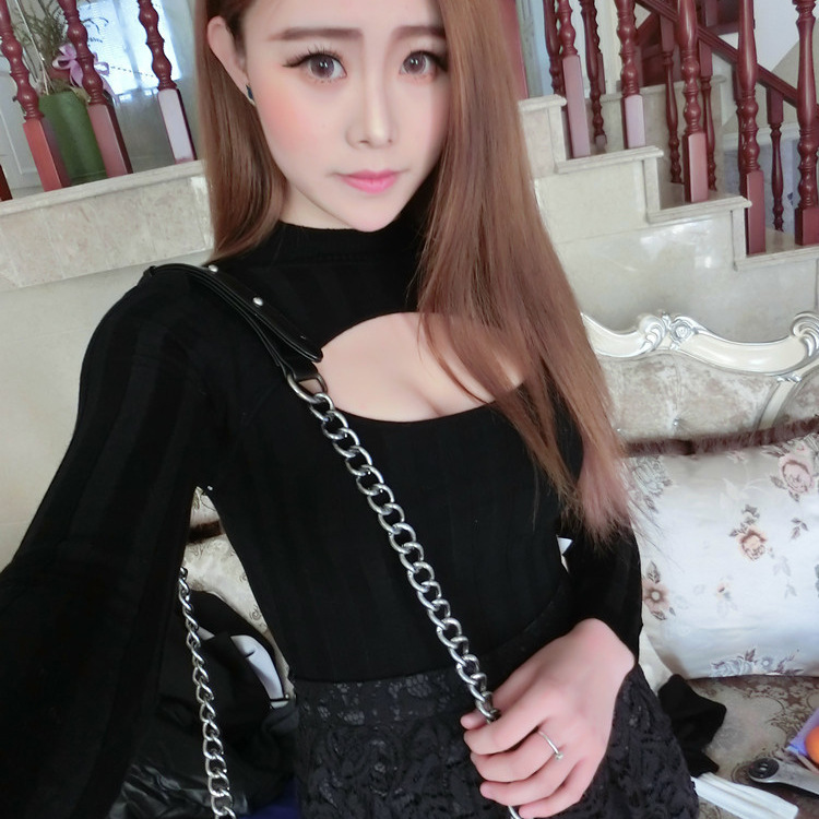 2015春裝新款日本高領(lǐng)毛衣修身套頭開(kāi)胸時(shí)尚性感女式針織打底衫 /