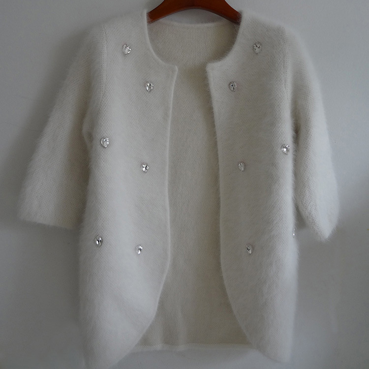 2015秋冬裝女裝新款鑲鉆訂珠圓領(lǐng)燕尾氣質(zhì)加厚款貂絨毛衣開(kāi)衫外套 /