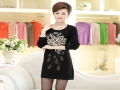秋季新品媽媽裝中長款圓領(lǐng)中年女式長袖針織連衣裙女韓版毛衣女 /