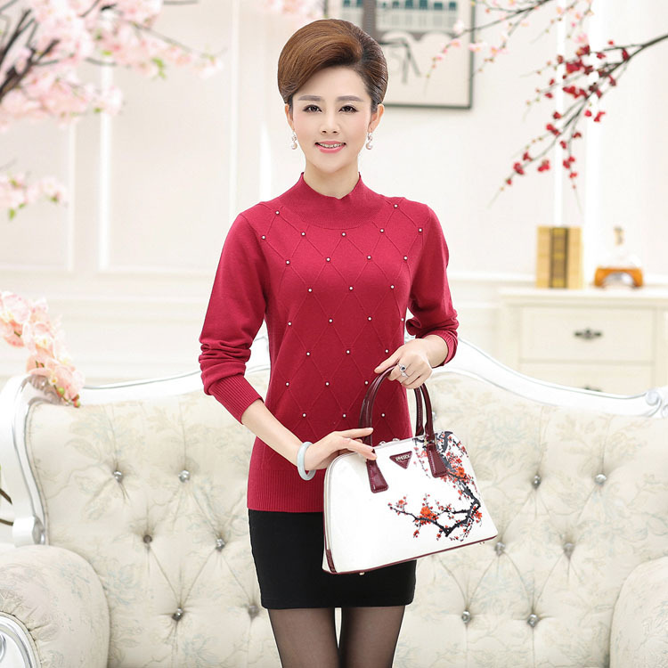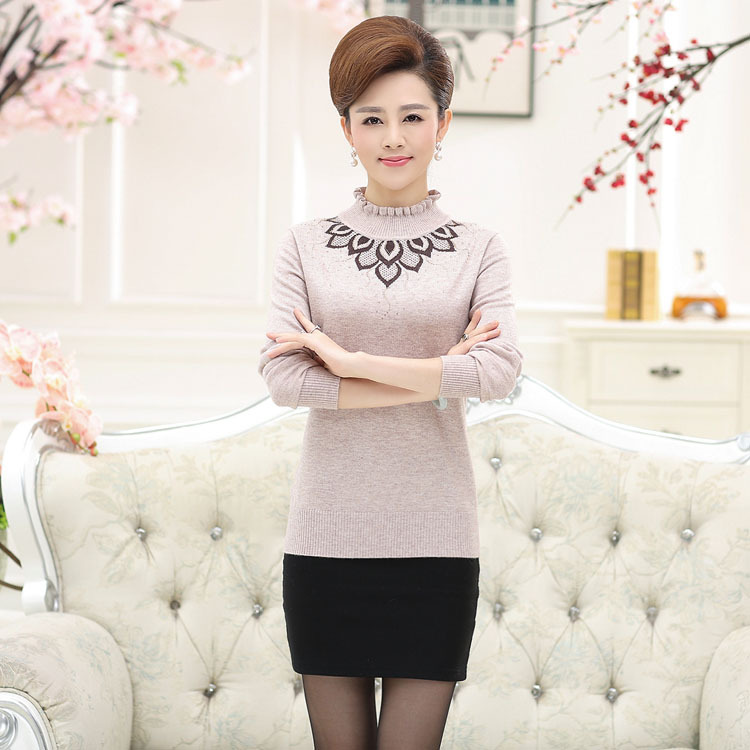 秋冬裝新品高檔高領(lǐng)外套女士毛衣中老年針織衫中年女裝女士羊毛衫 /