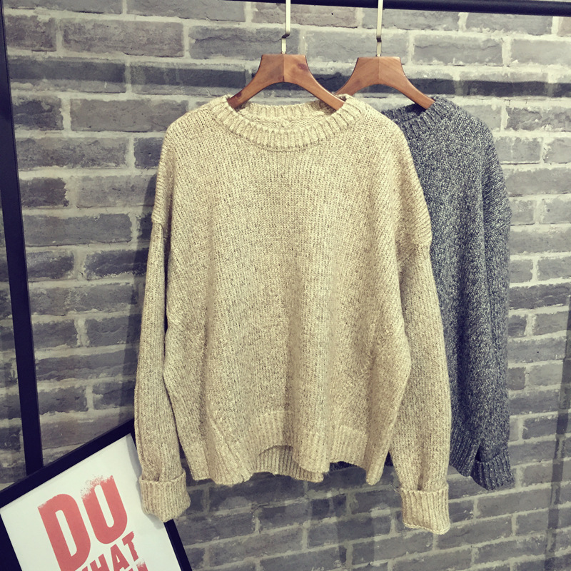 2015東大門套頭毛衣針織衫女 秋冬加厚毛衣純色寬松針織衫長袖棉 /