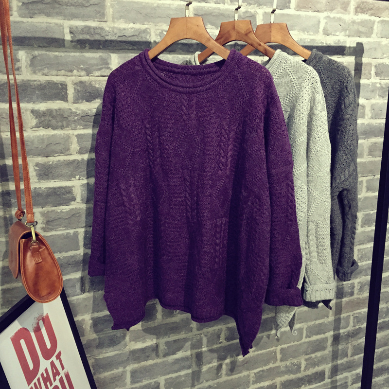 韓國東大門毛衣女士 2015秋冬針織衫復(fù)古寬松麻花套頭羊毛外套BF /