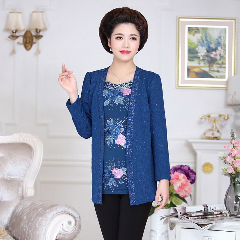 2015秋裝新款中老年女裝長(zhǎng)袖假兩件媽媽裝打底衫廠家直銷一件代發(fā) /