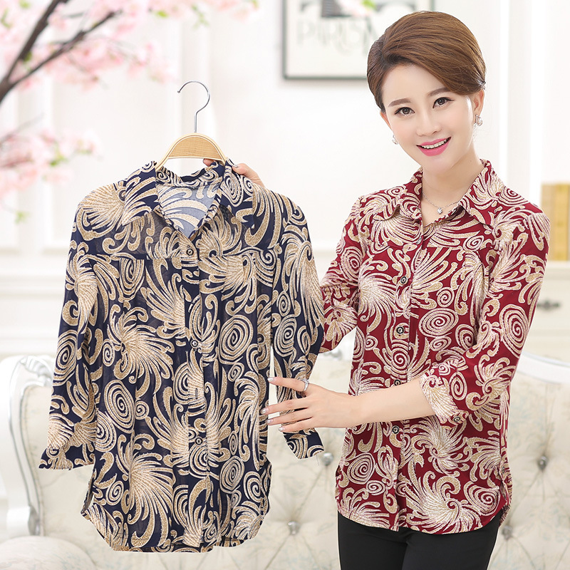批發(fā)庫存服裝 促銷中老年長袖t恤 品牌女裝翻領(lǐng)媽媽裝T恤 多款式 /