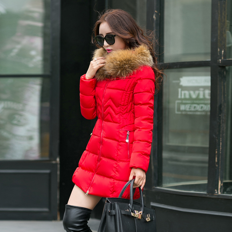 2015秋冬新款女裝大毛領中長修身時尚羽絨服棉服超大碼加厚潮 /