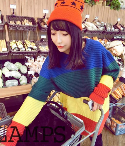 一件代發(fā)韓版秋冬季小眾古著彩虹毛衣軟妹學(xué)院拼色條紋寬松套頭 /
