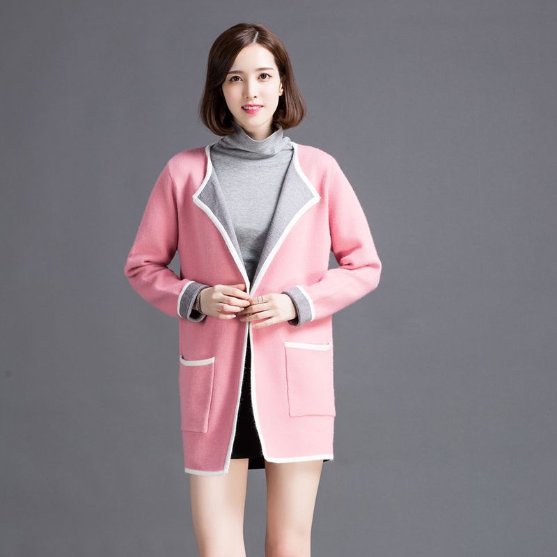 羊毛大衣 修身毛呢外套女 長款雙面絨呢大衣2015秋季拼接雙面 /