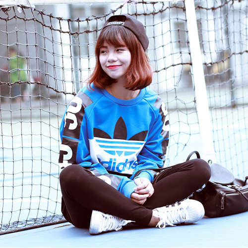 實(shí)拍2015秋冬ad女韓版班服學(xué)院風(fēng)撞色女裝BF大碼寬松衛(wèi)衣 潮 /