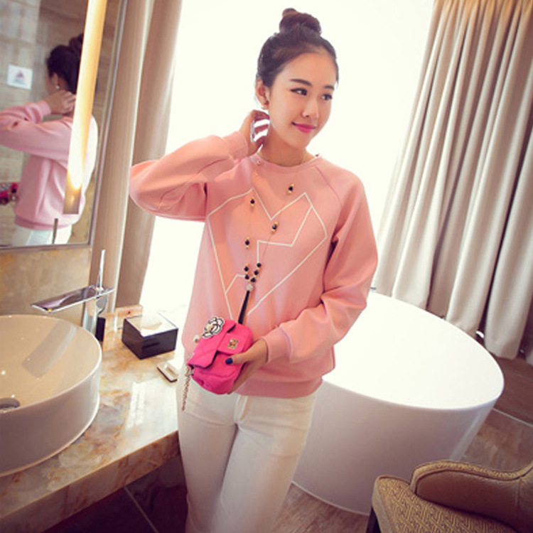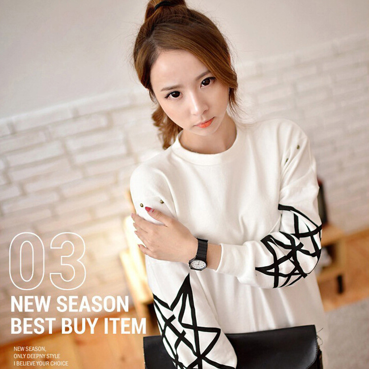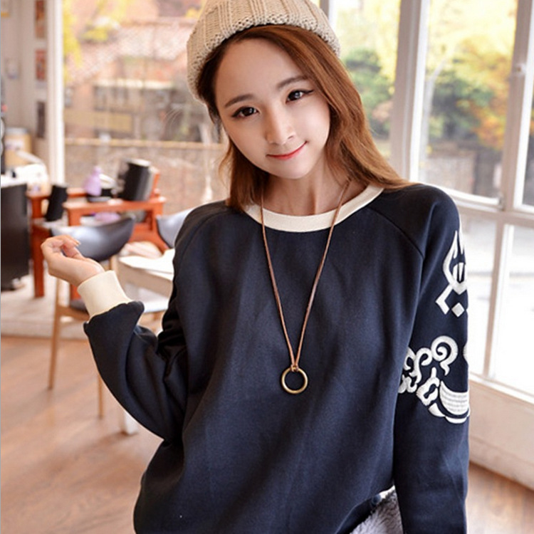 淘寶爆款韓版女裝寬松圓領(lǐng)套頭衛(wèi)衣 加絨加厚印花長袖百搭女式T恤 /