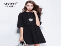 秋季新品女裝 秋時尚純色寬松腰中袖立領中裙 高端品牌連衣裙批發(fā) /