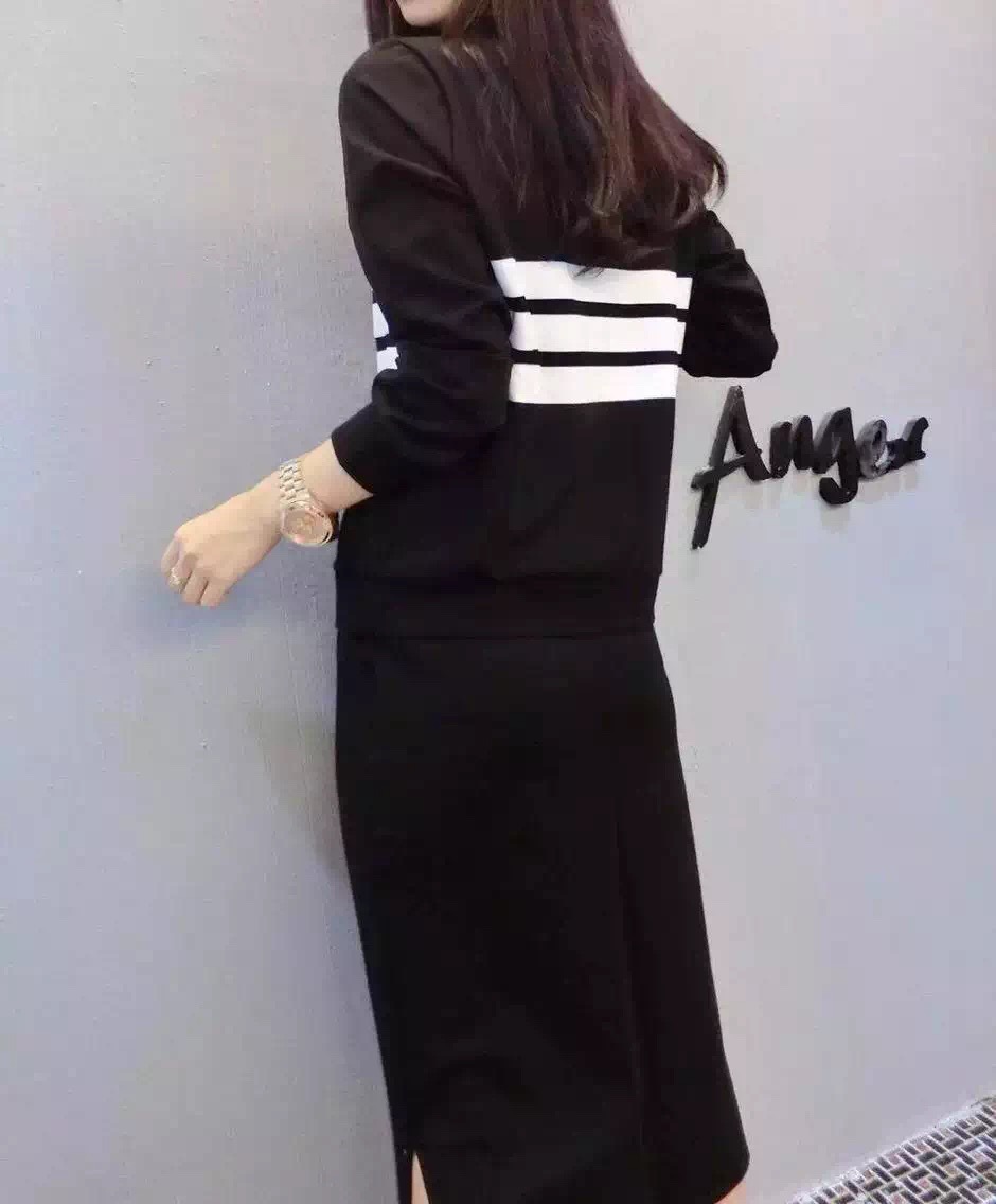 歐洲站2015秋裝新款套裝長袖上衣顯瘦中長款包裙半身裙純棉兩件套 /