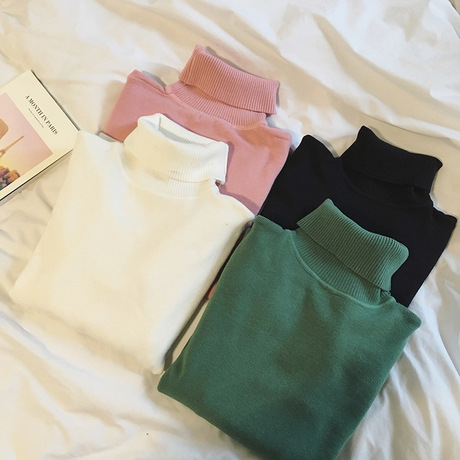 2015冬裝新款 韓版修身顯瘦百搭高領(lǐng)針織打底衫薄毛衣女 /