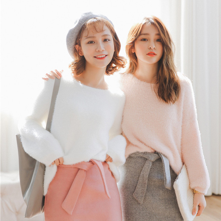 品牌女裝 毛衣女2015秋冬新款仿貂絨套頭毛衣女韓版寬松針織冬潮 /