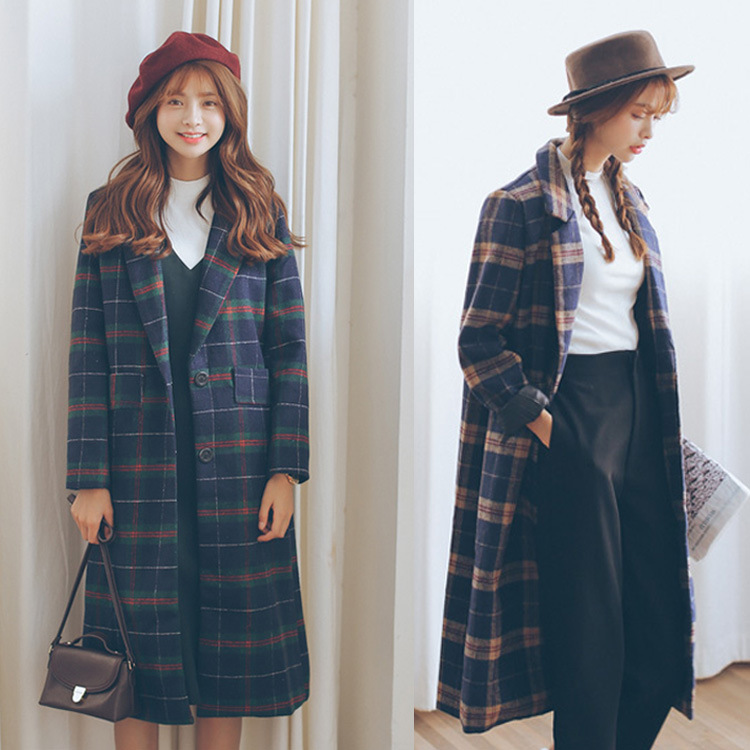 料好價優(yōu) 2015秋冬季女裝新款 格子外套女中長款 格子毛呢外套 /